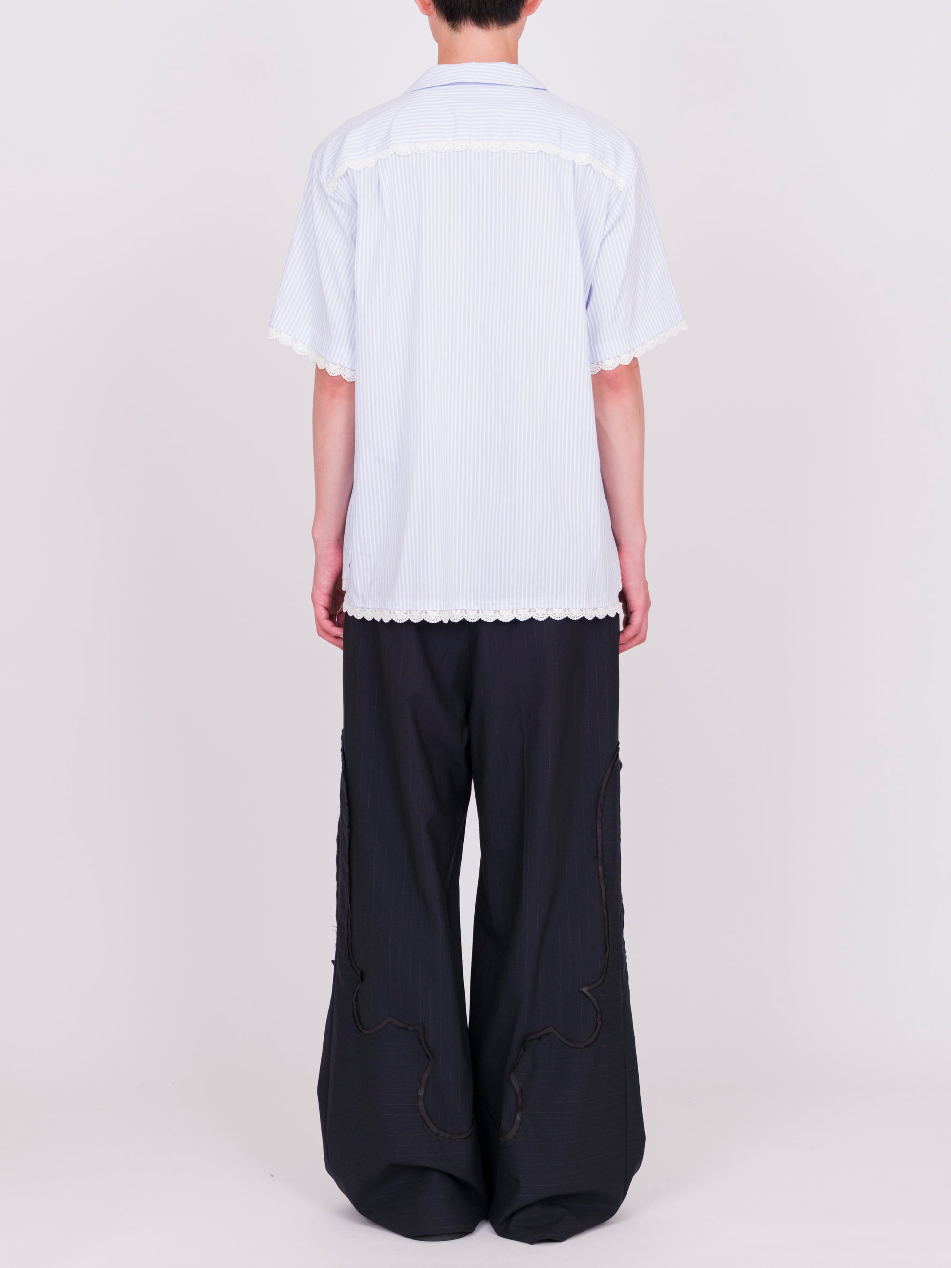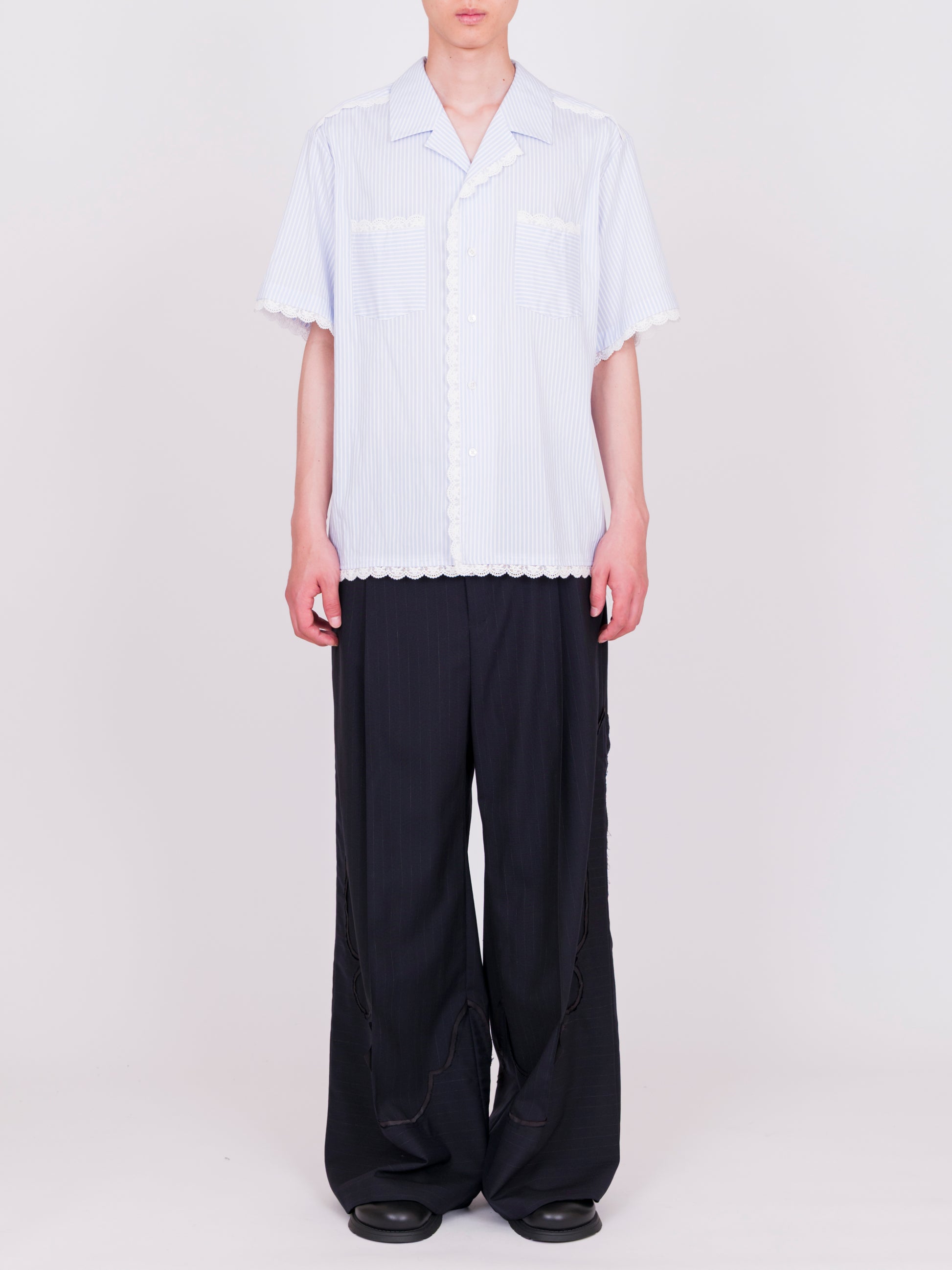 Lace Trimmed Open Collar S/S Shirt