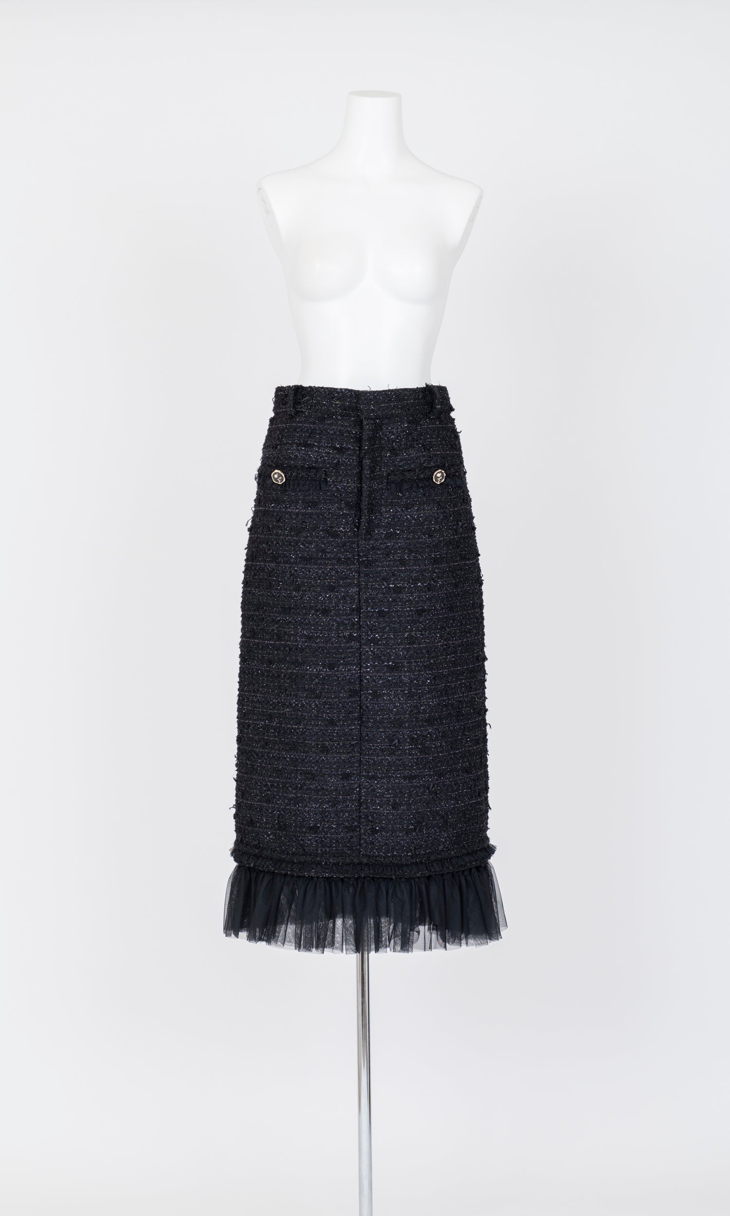 Tulle Layered Tweed Midi Skirt